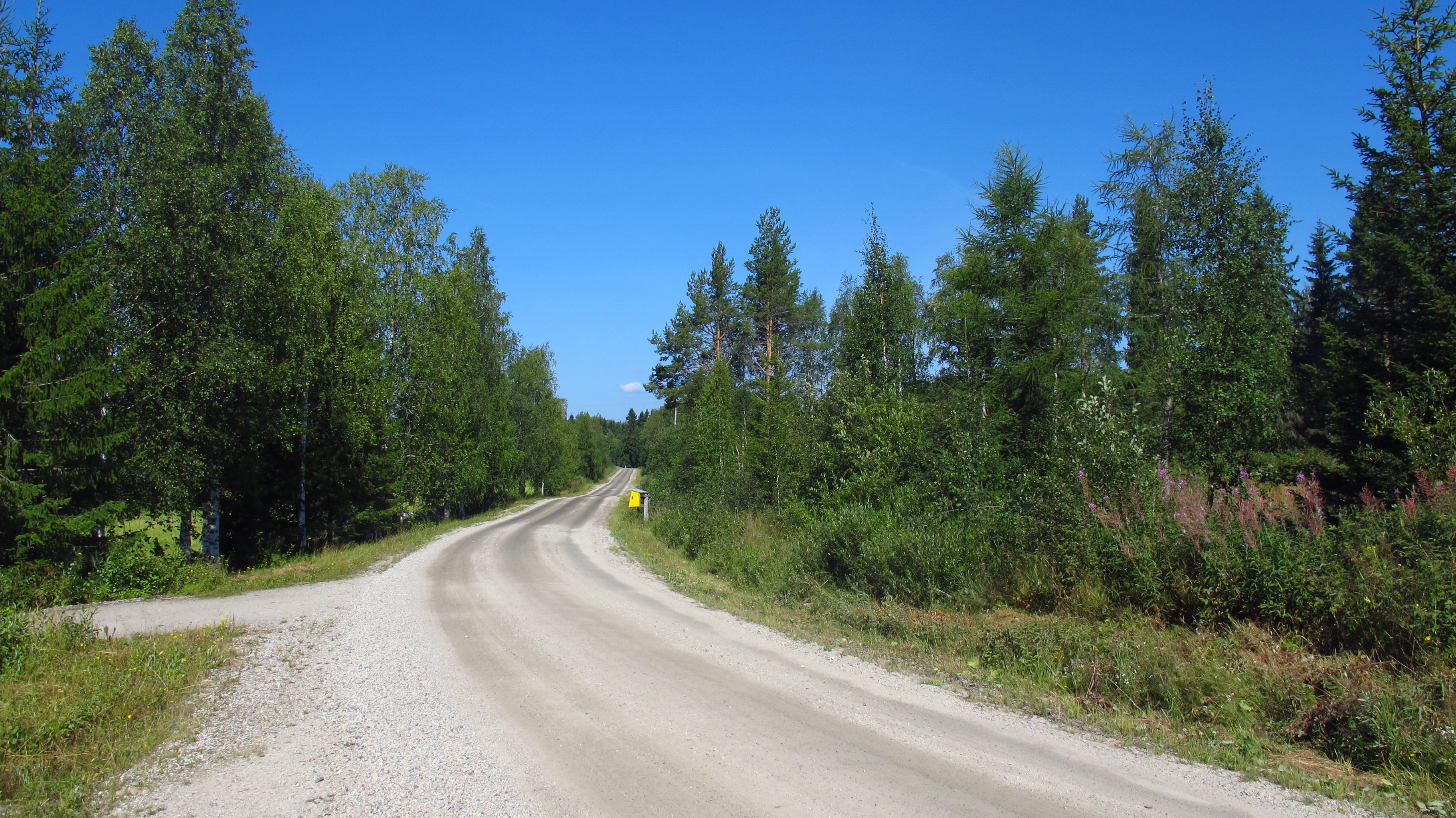 By midday I had covered a lot of distance, and the day had improved a bit. I stopped at a café to have some lunch and had a short chat with two Swiss bikers coming down from Norway. They told me that the weather there had been miserable for the last few weeks. That worried me a little, as I was counting on camping all the way in Finland, Norway and Sweden…
