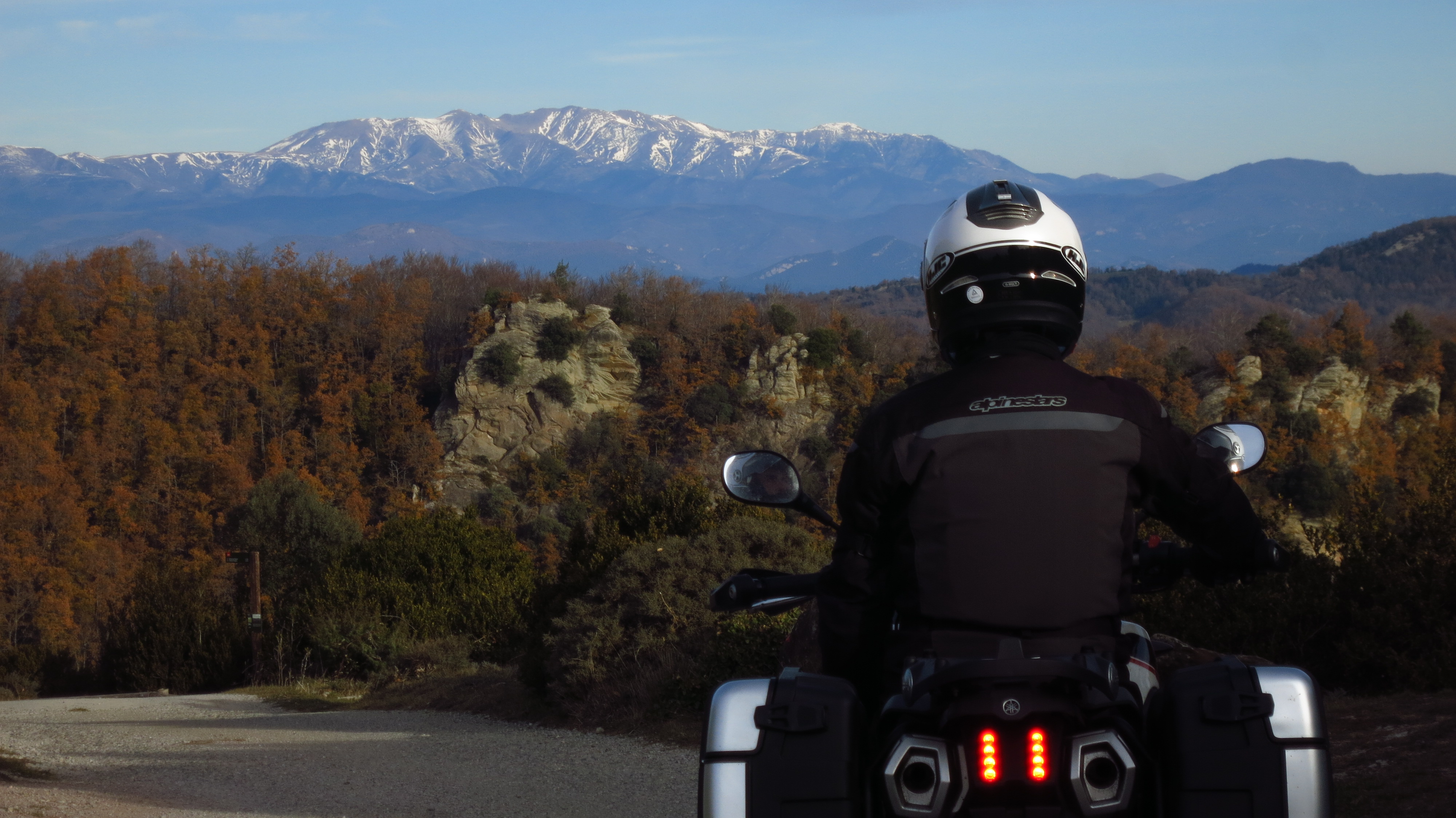 The route we have planned for the day starts just off exit 183 on the C-25 road that connects Cervera and Girona. Despite having heated grips on both motorbikes, our fingertips are painfully cold by the time we turn off the motorway, the hand guards being very good at protecting the brake and clutch levers in case of a fall but not so good at aerodynamic protection for our hands.