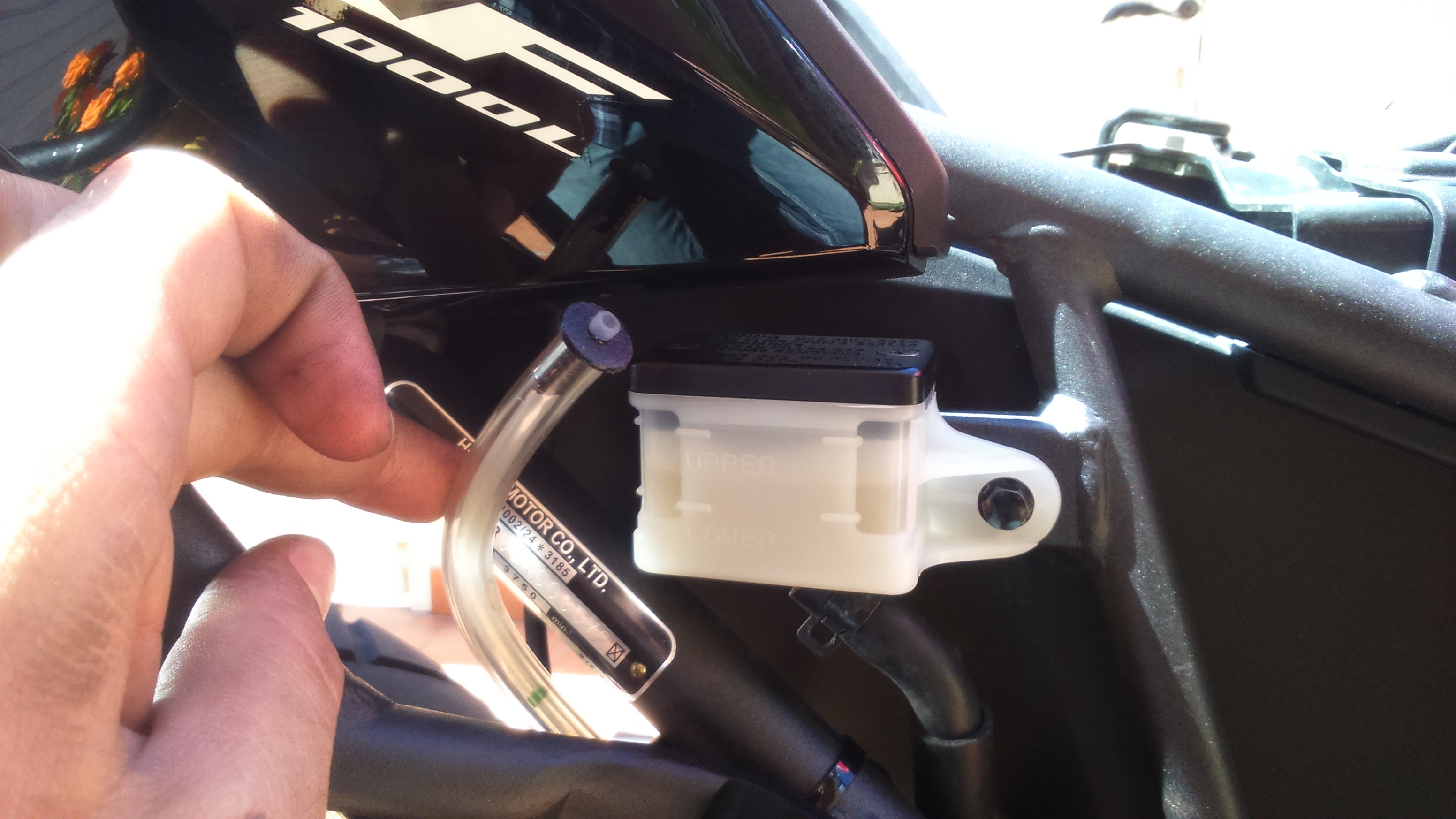 Removing the tank is also a fairly straightforward process – there is only one bolt to be undone (under the seat), even though you need to remove the seat lock assembly to access it, and you pull it up and back to detach it from the front mounting points, which are two rubber pegs. With the help of a friend who lifts the tank a bit, unplug the fuel line, two electrical connectors and the rubber tubes for the breathing and the overflow and you are done. It is much easier if the tank is empty or close to it, as it is much lighter.
