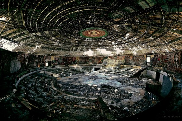 Last summer I visited this incredible relic of Bulgaria’s communist past and found it in a sad state of disrepair. The snow and low temperatures of winter had damaged the domed roofed so badly that the danger of collapse was imminent and the authorities had welded shut all doors and windows to prevent access to the inside of the building.