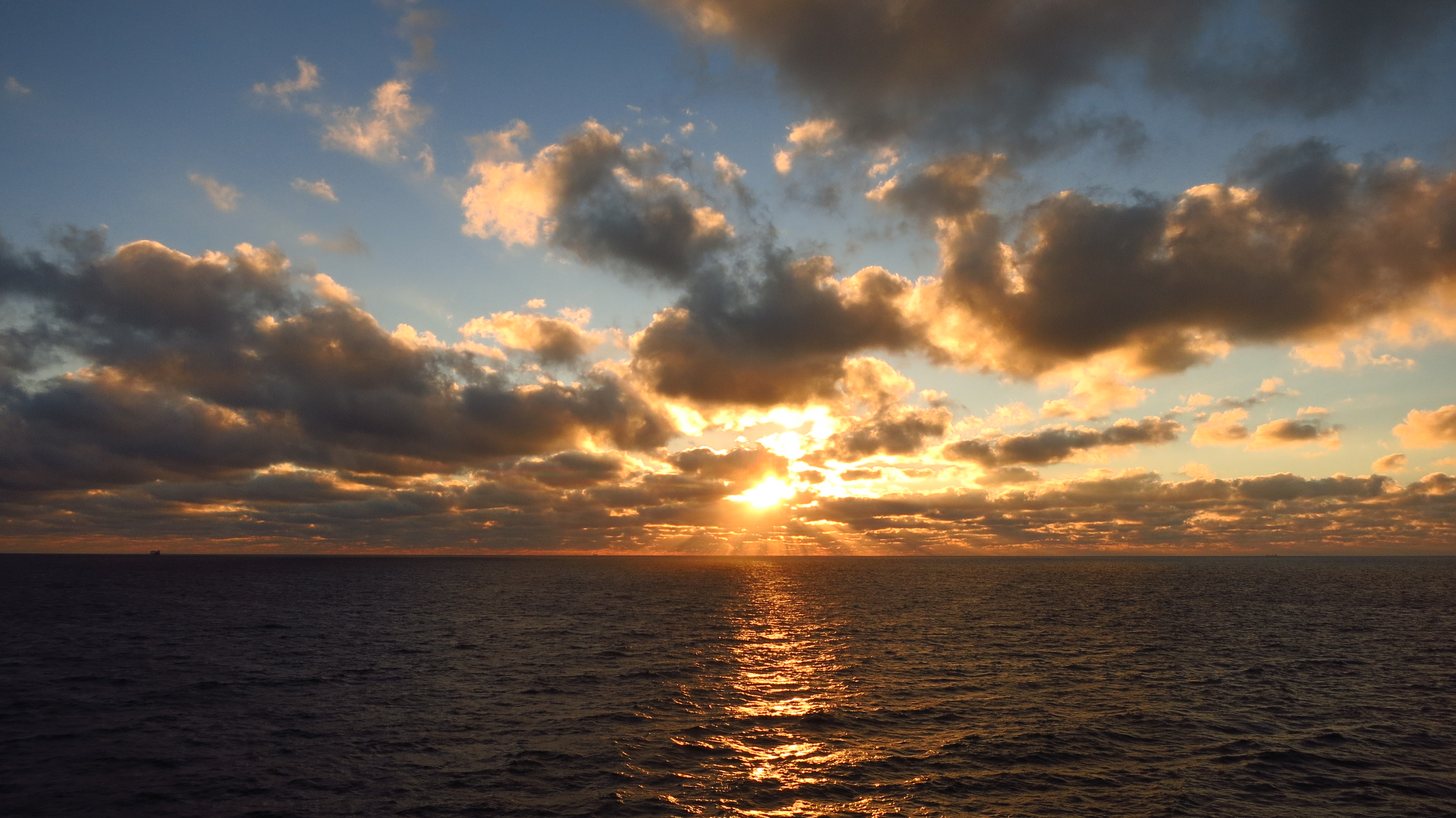 The rest of us spent our time on the upper deck, the only passengers fool enough to brave the cold to contemplate the sun rise over the sea.