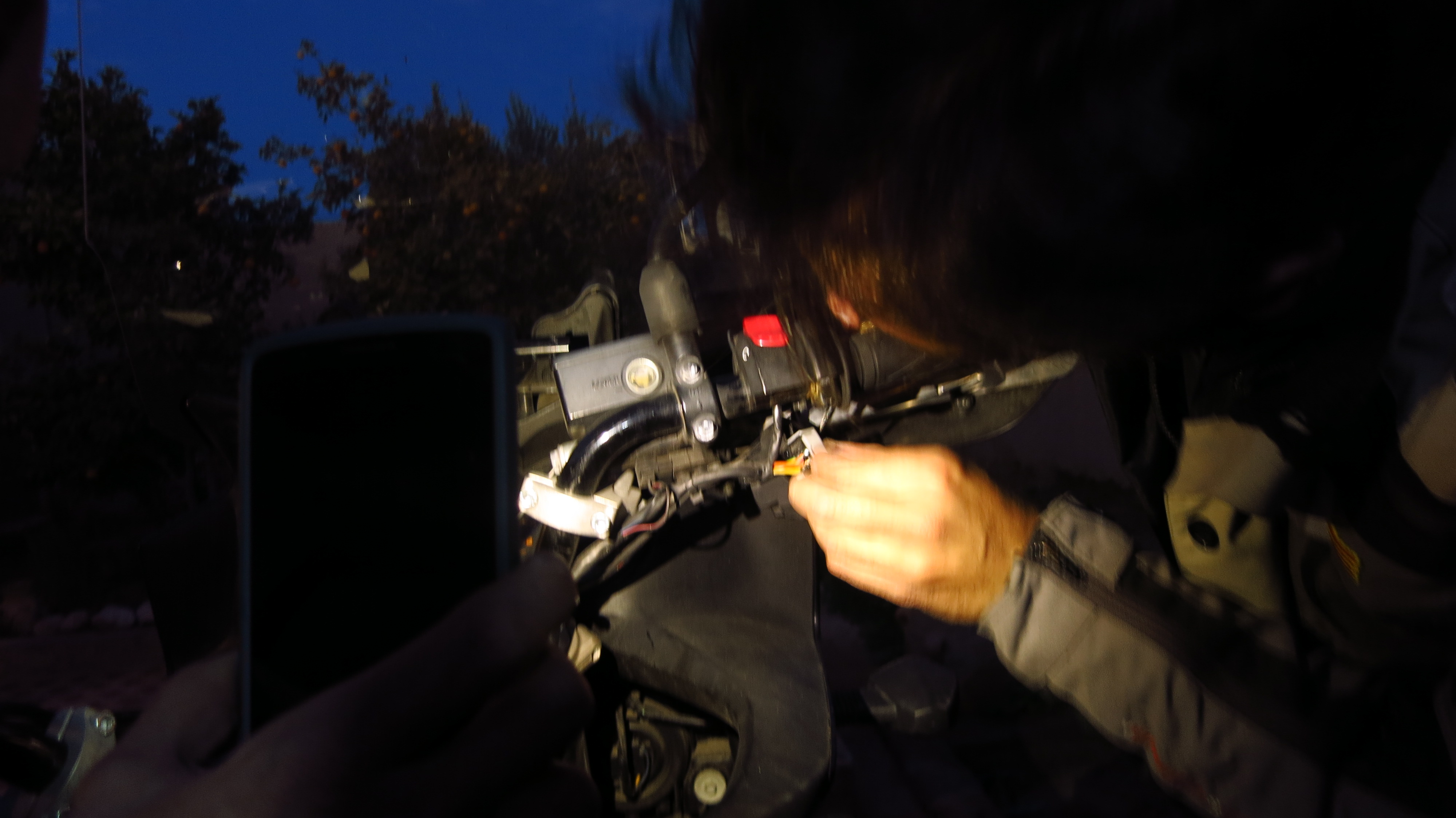 Before settling down we set about fixing the headlamp in Gerard’s bike, which had stopped working in the morning. Fortunately, I had had the same problem with my V-Strom a few months later and knew how to fix it – it was a faulty ignition switch contact, which needed cleaning and adjusting.