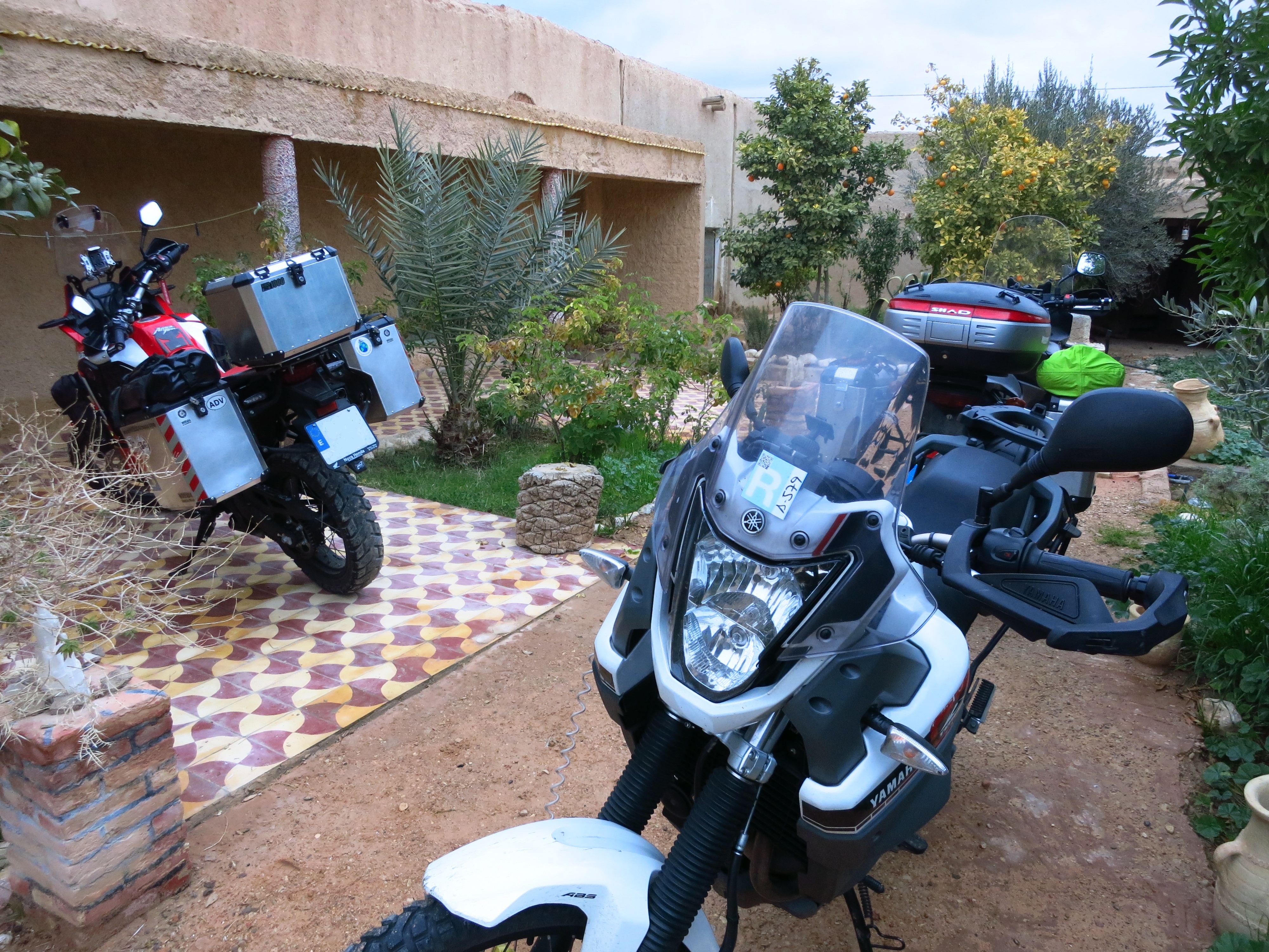 This time we had booked space in a place called Villa Rita, a guesthouse 15 minutes on foot away from the medina. It took us a while to find it, as there was no clear address and the GPS location was approximate, and when we knocked on the door, there seemed to be nobody there. Fortunately, after a phone call, the manager appeared and things changed for the better very fast – we had space to park the bikes inside the house, instead of just rooms we had a whole floor, a complete apartment for us, there was heating in the rooms, a fireplace in the living room, working wifi signal in all the rooms and hot water in the bath. This was by far the best place where we had stayed.