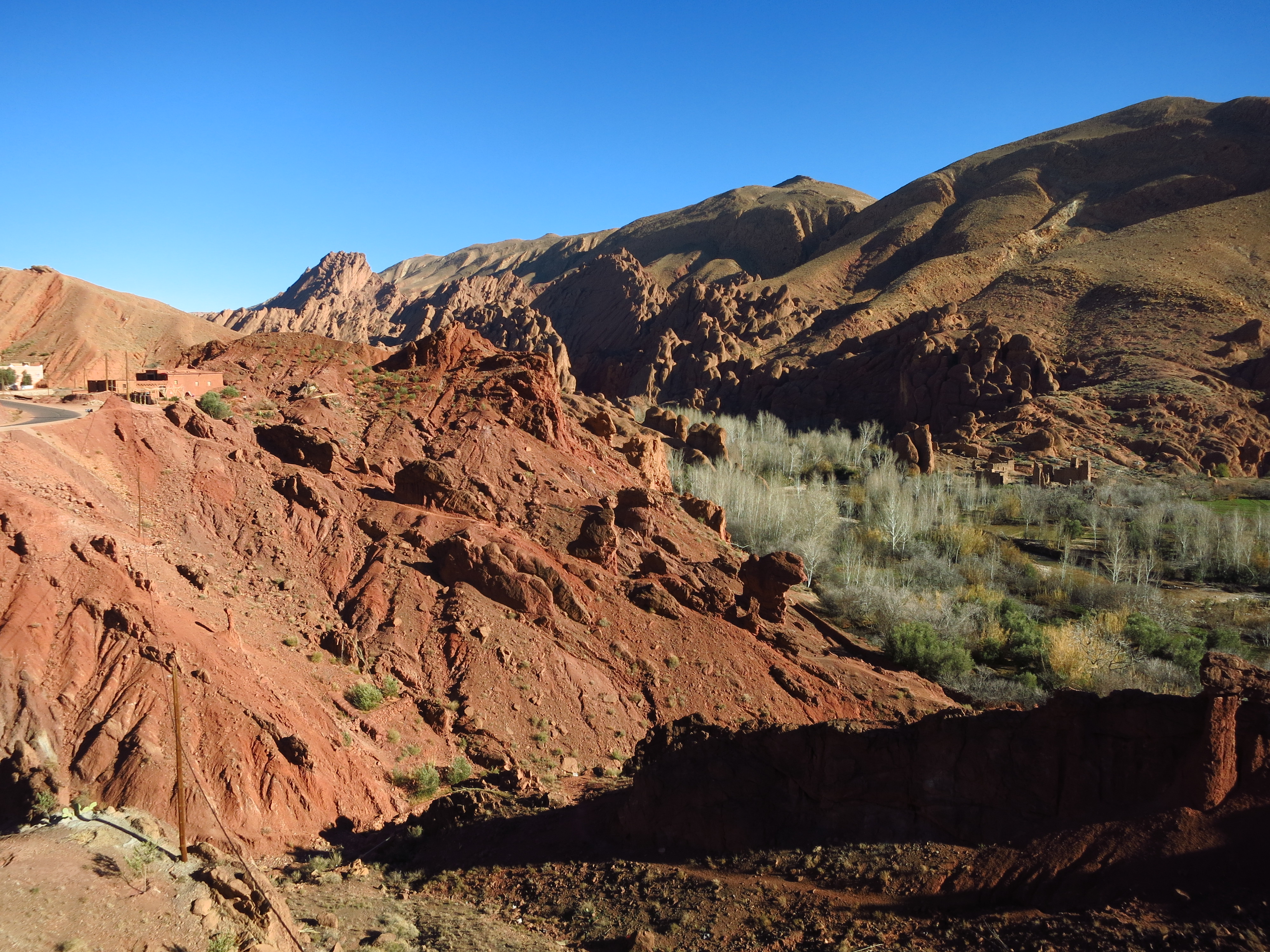 We were starting to feel tired when we turned into the Gorges du Dades, so when we saw a café with a terrace overlooking the rock formations across the river we stopped for a well deserved rest.