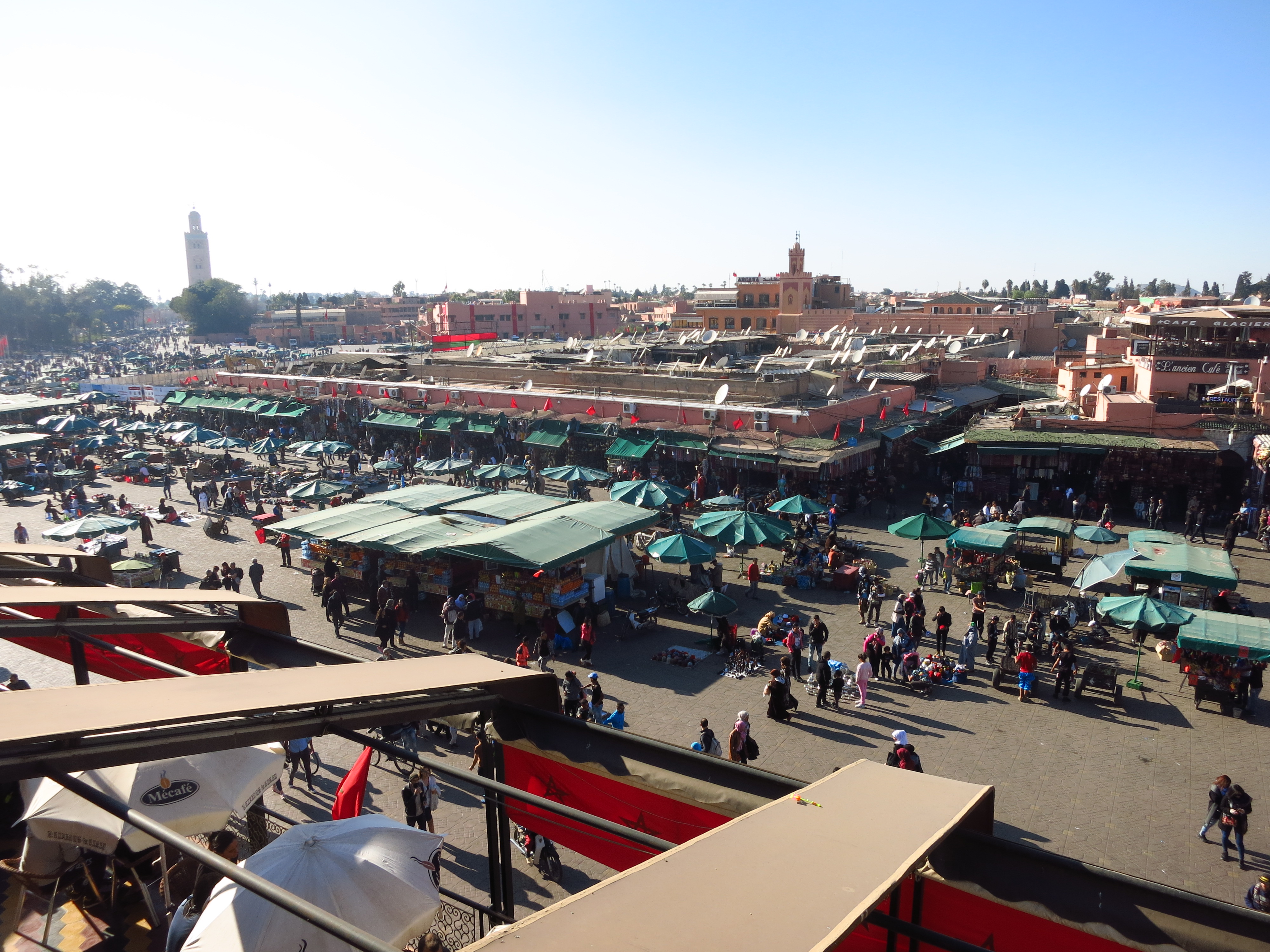 We spent the day in the intoxicating chaos of the medina, buying some souvenirs and enjoying the atmosphere. After so many days of long hours on the bikes it felt great to spend a day on foot just relaxing. We had a kebab in the Jemaa el-Fna square, a coffee and a goffre in one of the roof terraces overlooking the square and headed back to our riad to see the sunset on the rooftop.