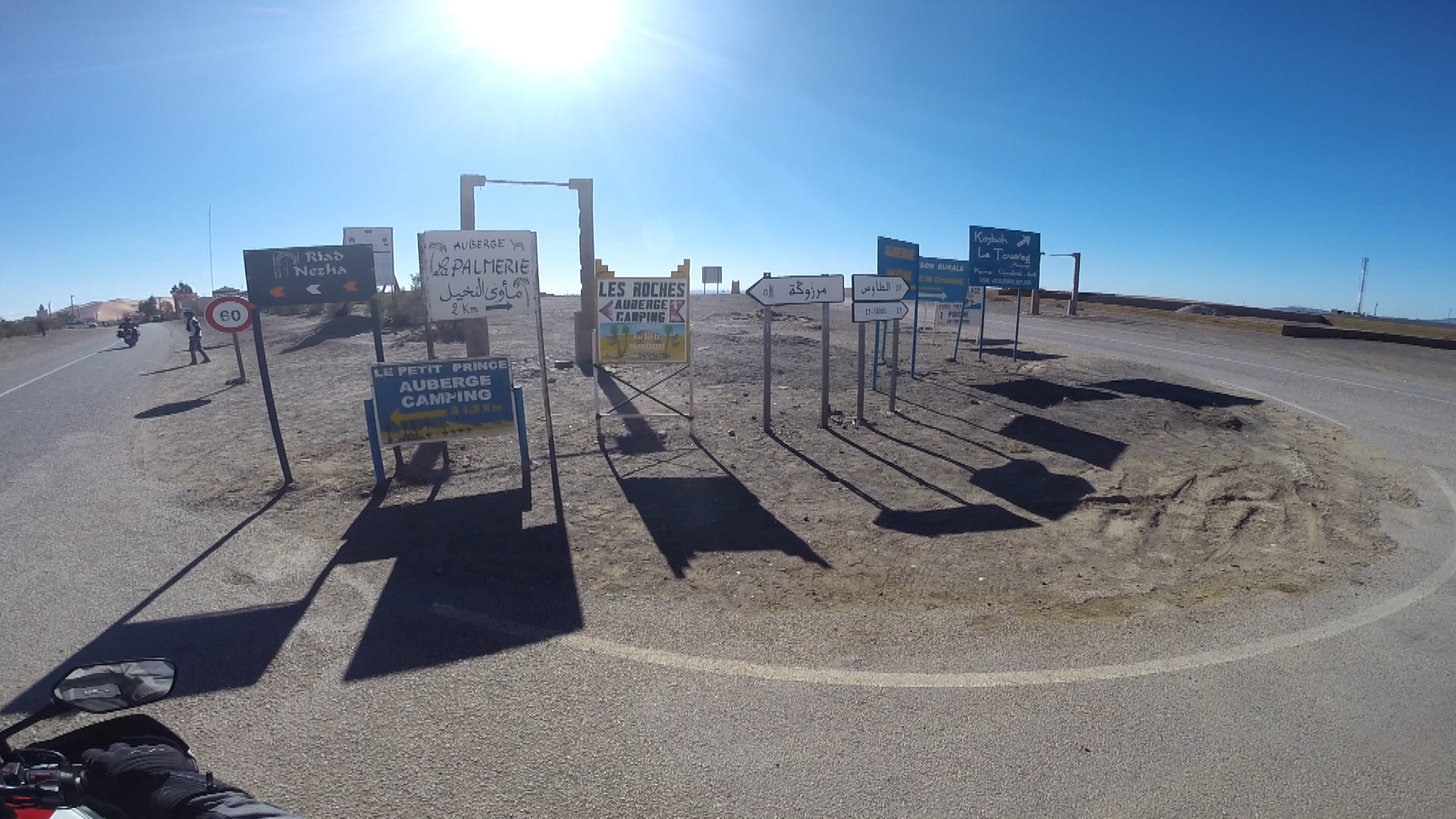 After the incident we reached the road to Merzouga in a matter of minutes, said goodbye to our guide and headed into town to find a place where Esteve could get the brake lever into proper shape.