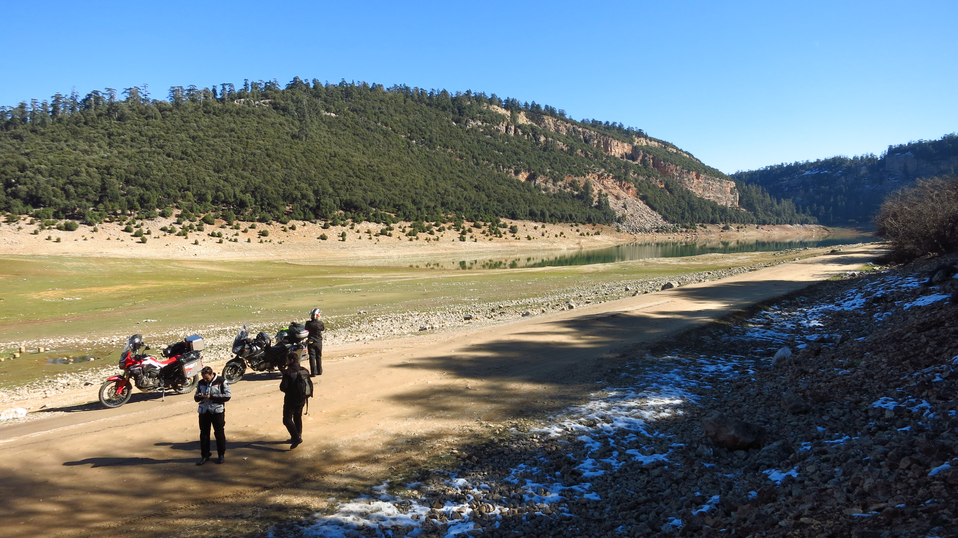When we reached the city of Kenifra we turned right off the national road and started gaining altitude through narrow roads again in the search of our first stop – a lake called Aguelmame Azigza. The open spaces of the green fields turned into cedar forests and there were patches of snow here and there, and even some ice when we stopped at a crossroads to check which way to go.