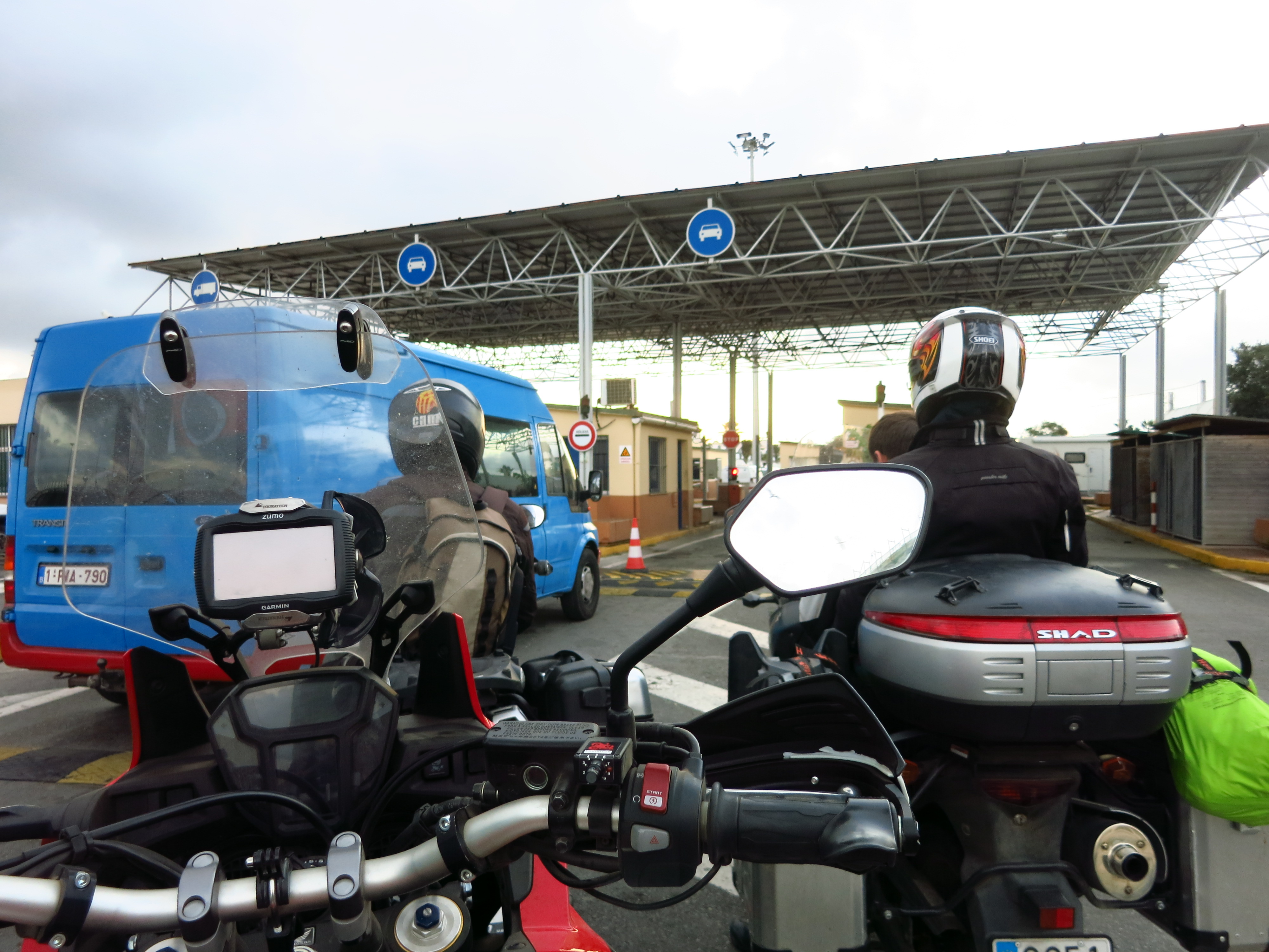 Well, actually, we first had to try to get our bikes across a human flood trying to get across the border. Not the immigrants or refugees that you hear about in the news, trying to reach this small piece of EU territory in Northern Africa, but a mob of Moroccans that cross the border to buy things that are cheaper than in Morocco or impossible to find there and then take it to their country to sell it. To prevent the border facilities from being overrun with people carrying boxes and bags the guards only open the pedestrian crossing at given intervals and then all the people waiting make a run for it. We were riding the bike behind a van and a short distance from the vehicles entrance we saw a lot of people sitting around and waiting, Then, as luck would have it, just when the van was driving over a zebra crossing the guards must have opened the doors, because everybody suddenly stood up, grab their stuff and dashed to the gate. In a matter of seconds, we were surrounded by a human mass, and I feared that someone would bump into or be pushed against us and with such a heavy bike and a passenger I would lose balance and end up on the ground.