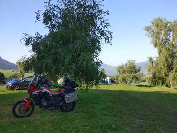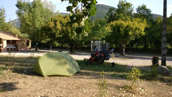 Back at the campsite there was one last surprise to round off a perfect day. Just as I sat at the terrace of the bar, ready to order a well-deserved beer, I spotted Harald, the German guy that I had met in Séez and who had recommended this place. He joined me at my table and we had a few beers together and talked about motorbikes and travels.