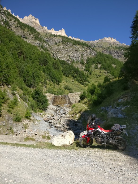 One of them, a Dutch guy on a GS1200 Adventure, stopped to take some pictures and I approached him to ask about the state of the tunnel and we started talking. He was travelling with his wife and they were staying in a house in Creveux, the first village down the valley. He left her there and come up to see if the road was easy enough to come up again with her as a passenger. It was the first GS1200 I had seen on the trip shod with proper offroad tires (TKC 80s) and going offroad. The guy was really nice, and since we were going in the same direction, he declared me his ‘friend for the next hour’ and offered to ride down together.