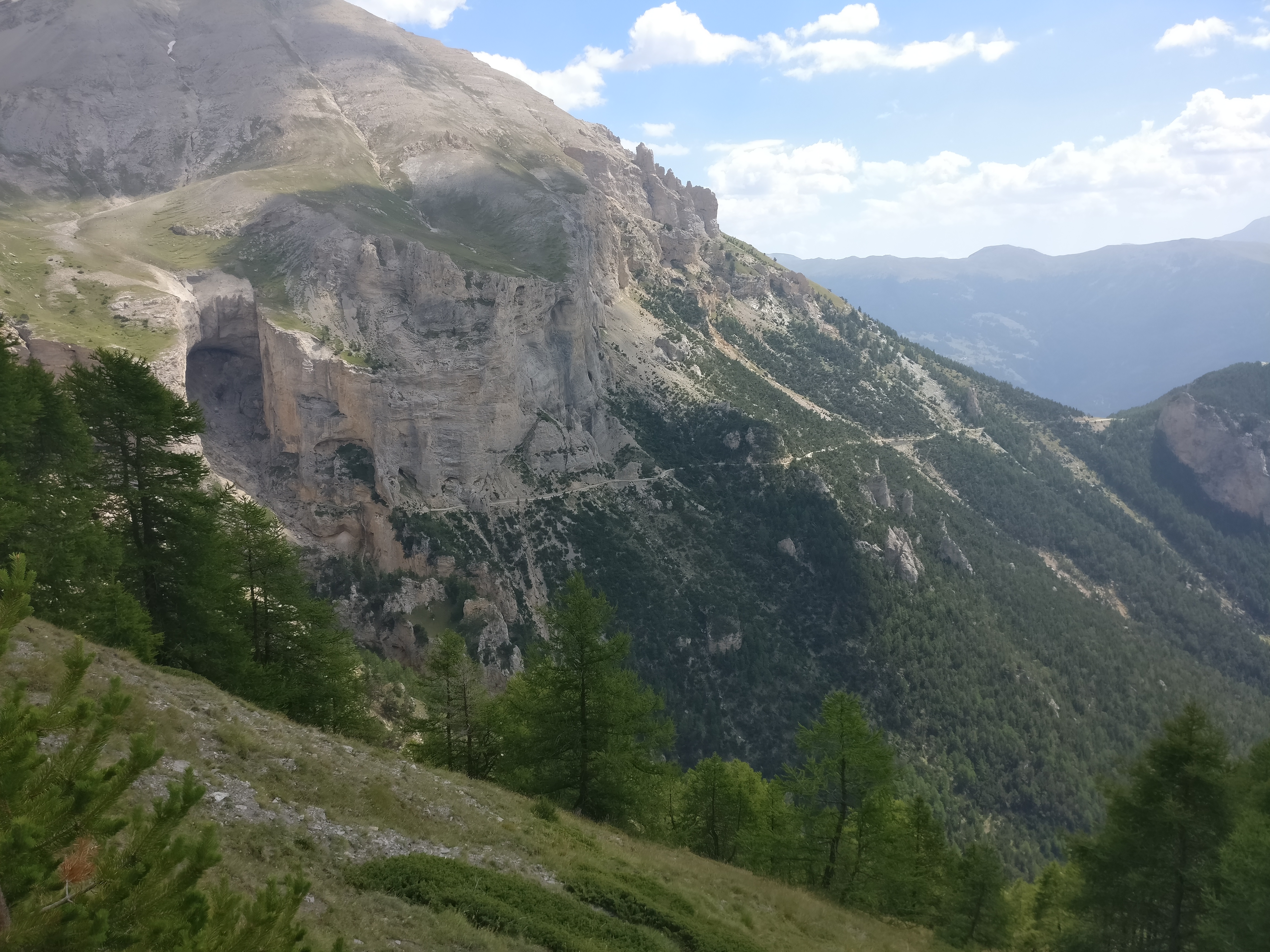 There are three different ways to get to the fort: two start from the town of Millaures – one through the service roads of a skiing resort and the other one the old military road, the Strada militare n.218. The other one is the other end of the strada militare, starting in the town of Moncellier. I wanted to take the latter because it had an element that made it particularly interesting – shortly before joining the road coming up from Millaures this route burrowed under some cliffs in what was known as Galleria del Siguret, an unpaved tunnel with a steep uphill section that was always wet and slippery and which had a fearsome reputation.