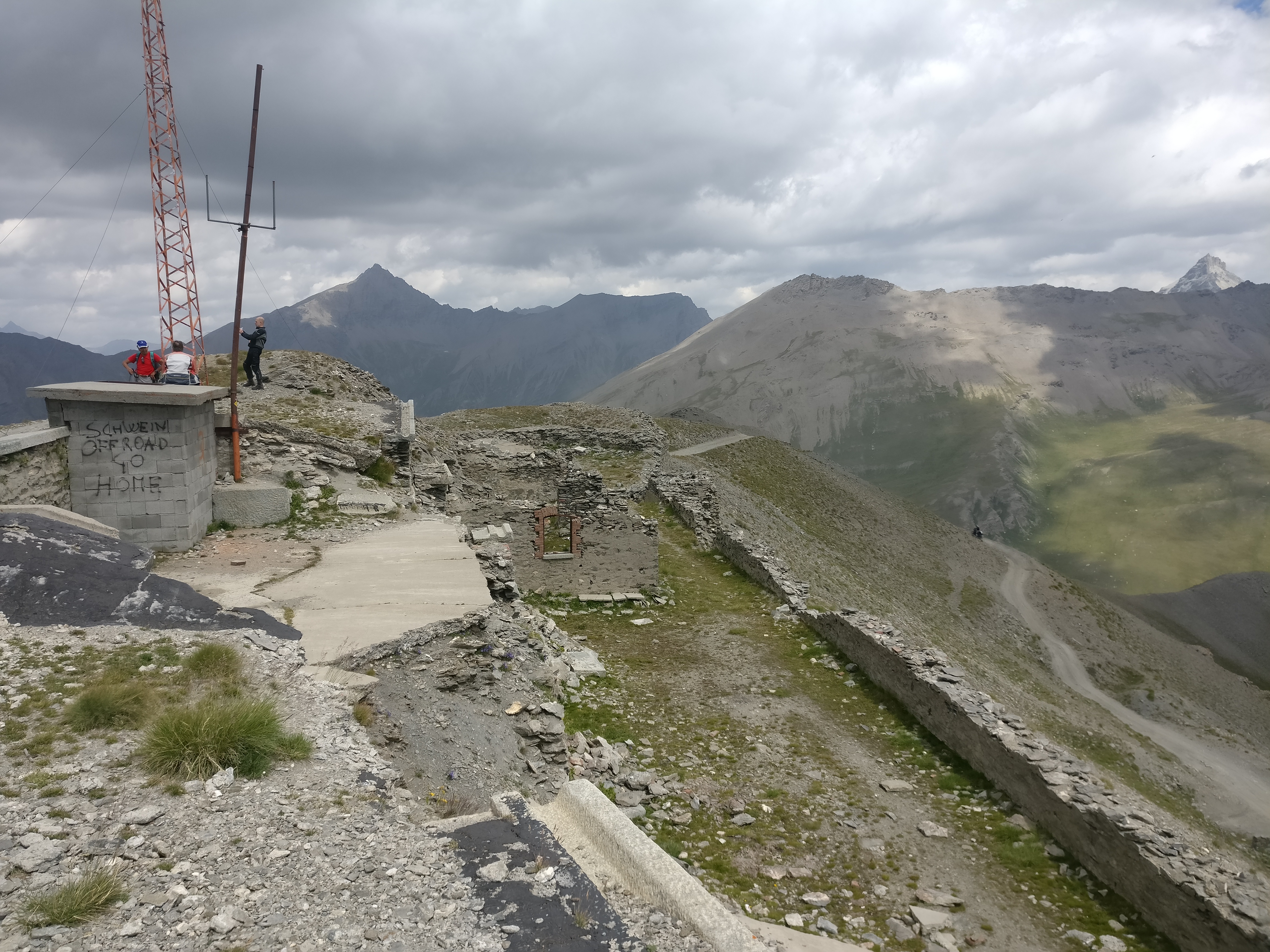 At the end of the plateau, things get complicated again. The road climbs the last few hundred metres on very rocky terrain, which made my bike jump around like crazy. I remembered some advice from the German riders I had met the day before at Forte Jafferau and stopped to let some air out of the tires. It made a world of difference – the bike was now a lot more controllable, going exactly where I wanted it to go and not jumping at all.