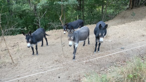 I had set my alarm clock for 6:30 to make an early start and avoid the hottest hours of the day as far as possible, but I needn’t have. At 6:00 sharp a rooster woke us all up, and kept singing at the top his lungs for at least half an hour more. I enjoyed breakfast in the company of donkeys and while was taking the tent down I saw that two terraces up from where I was there were some cages with rabbits. This was indeed a farm.
