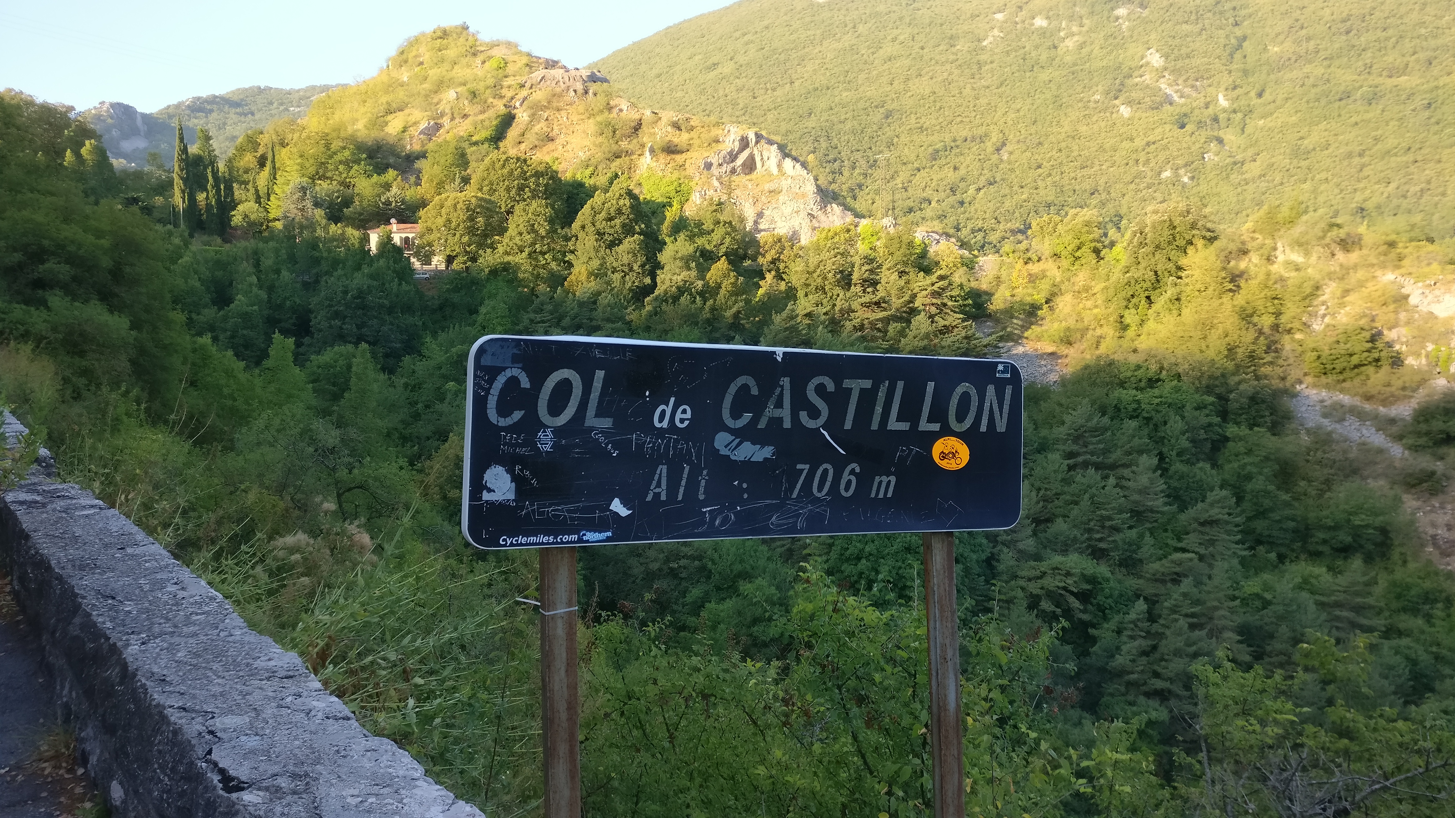 The road down to Sospel was delightful, a series of hairpins built on the rocky sides of the Gorges du Piaon, empty this early in the morning, as was the road to Col de Castillon, which I reached through the old road, as the new one crosses the hills via a tunnel lower in the valley.