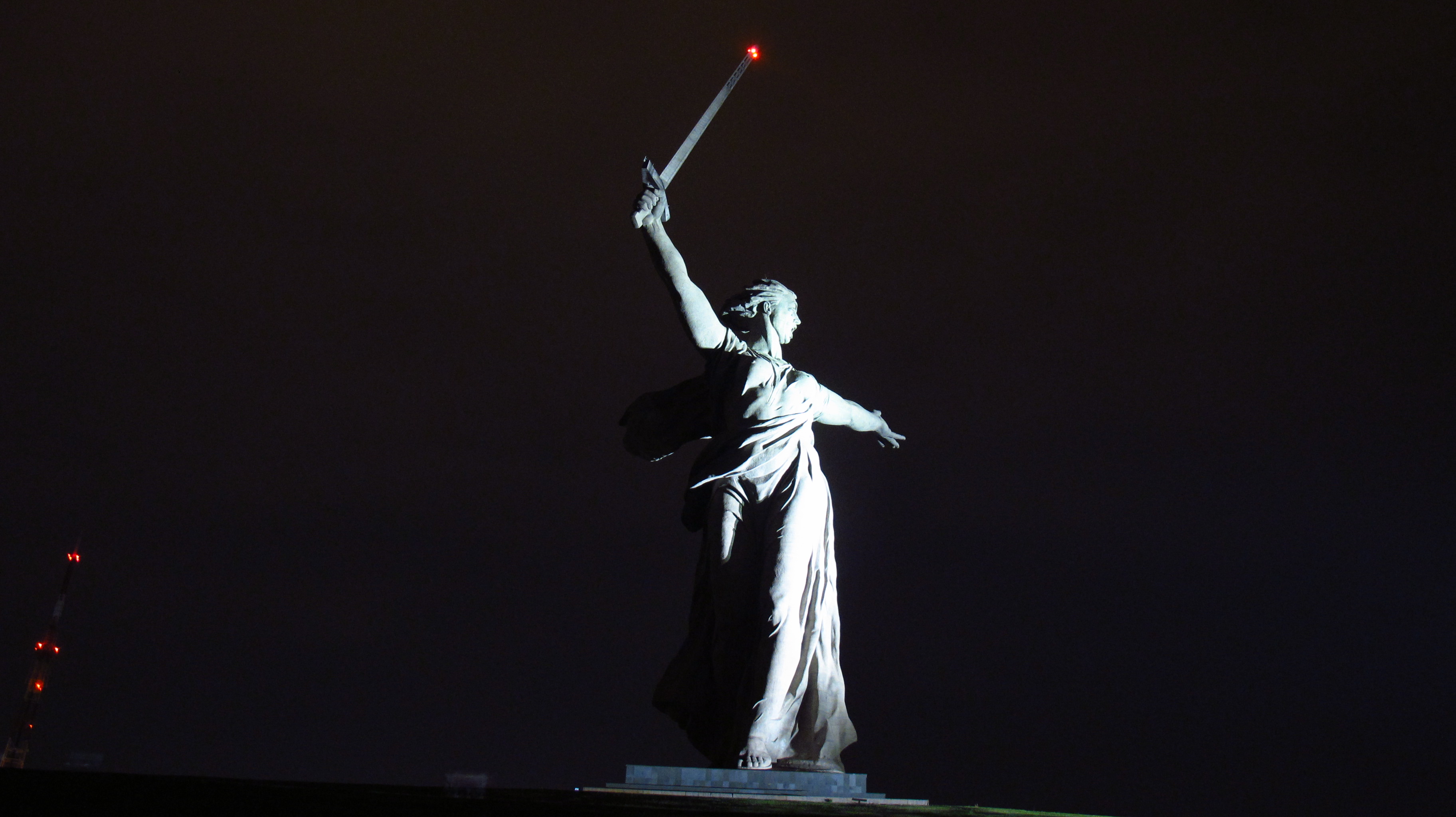 One of them, Lex, was from Holland and was riding an old Transalp down south into Georgia and then Turkey, and Martin was from the Czech Republic and was riding his GSA more or less along the same route I was doing, the only difference being that he was doing all the Stans, while I was only doing Kazakhstan. Our host’s girlfriend told me to drop my things and have a shower, and then took us for a walk. I did not take my phone or anything else, thinking that we would only be away for a while, but we went on a night tour of the city of Volgograd and were not back in the apartment until well past 2 am. I was shattered, but it had been more than worth it, we visited the city’s memorials of the battle of Stalingrad, and they were a magnificent sight at that time of the night, no heat and no other tourists around. Amazing experience.