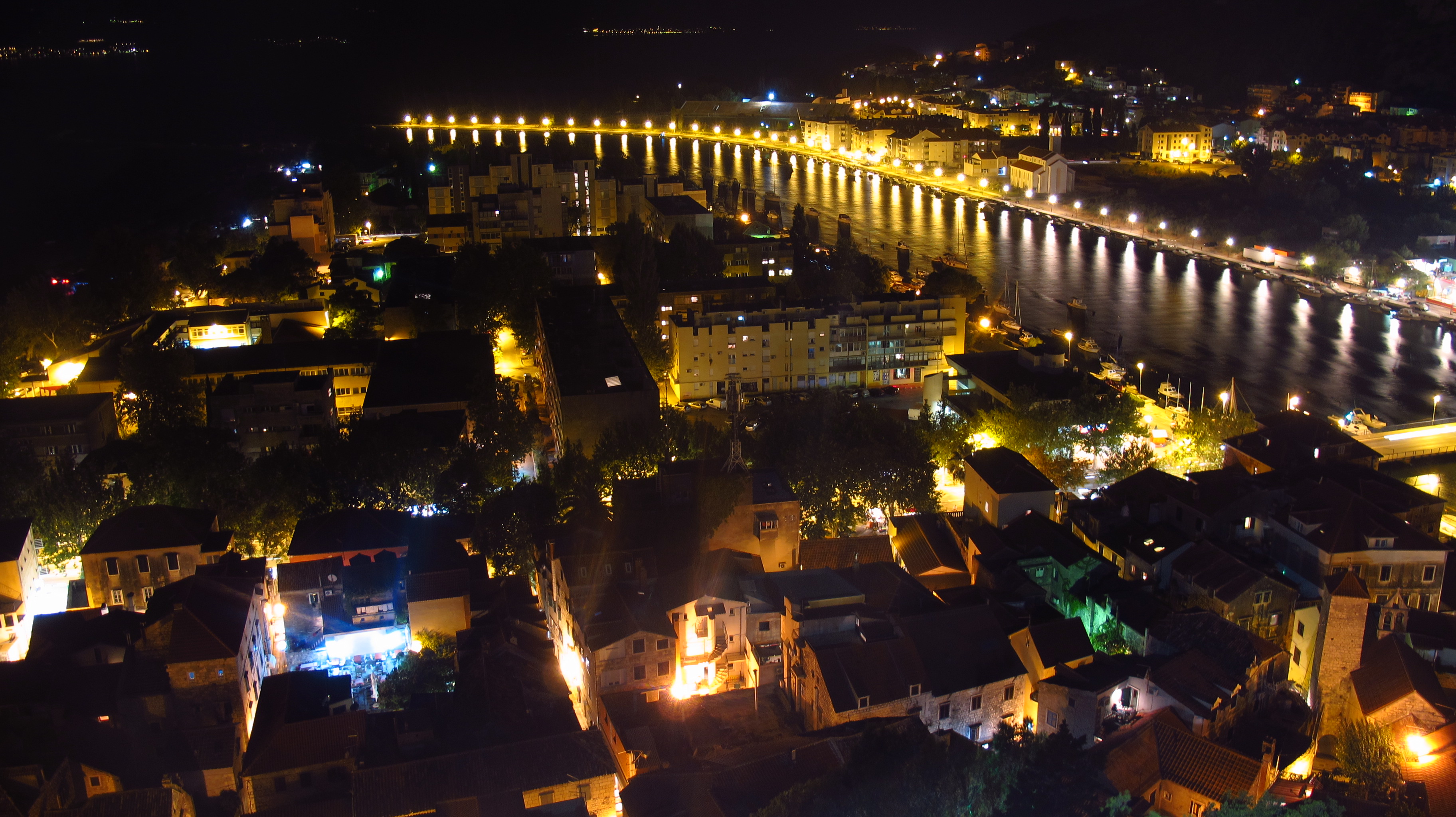 We found a nice restaurant in a narrow street in the old town, and enjoyed a huge platter of fresh seafood and fish. After that we bought a couple of ice creams and then walked up a steep narrow path cut into the rock to the town’s fortress, where a concert was just finishing. It was already dark and there was a beautiful view of the city from the top.