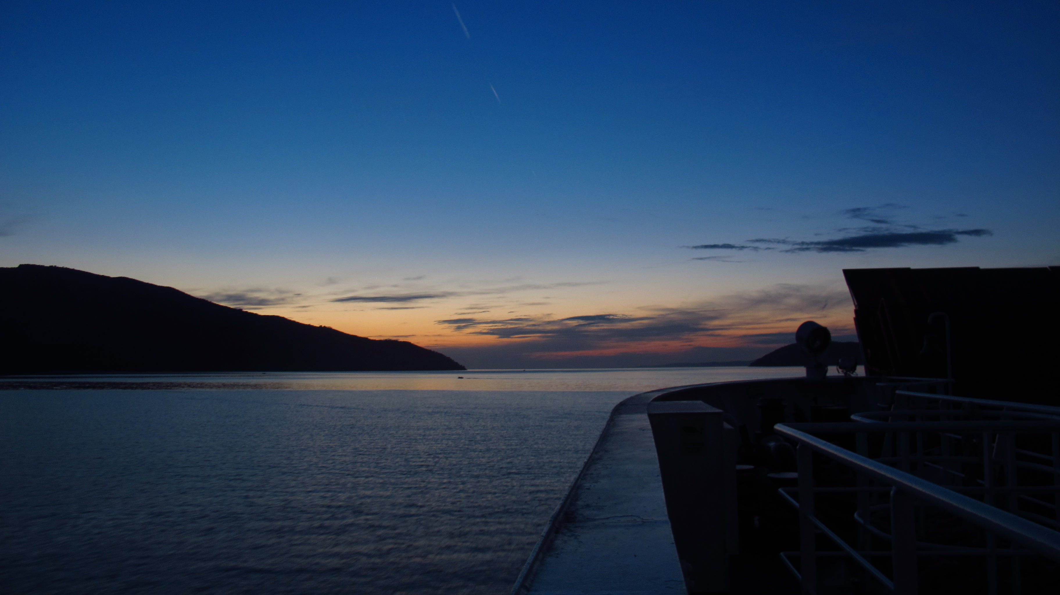 By the time we made it to the docks it was a few minutes past departure time, but the ferry was still there with the doors open and two of the crew members were standing there. A couple of cars were still boarding, so I rode directly to them and asked whether we could get tickets on board. They shook their heads and pointed toward the terminal building, indicating that we should buy them there. I rode across the yard and Nat ran to the offices while I waited outside on the bike. There was one last vehicle that still had not boarded, about twenty meters from where I had stopped on the opposite end of the yard from the ship. It was a knackered old blue van with a couple of men that looked like a mix of old hippies and gypsies, and by the looks of it, it was them the ferry was waiting for when we had arrived. An old woman on crutches approached them, she had gone to the building to get the tickets, but when they tried to start the van, the engine would not fire up. They tried again and again, but it was not working. While they were trying to get the van started, the old woman stared to slowly make her way across the yard with the tickets in her hand; Nat was not back with our tickets yet and the two men decided to push the van into the ferry and at that moment a weird race started that looked like something out of a Cohen brothers film. The woman was limping two thirds of the way across the yard, the men had already pushed the van about a third of the way and out of the corner of my eye I saw Nat come out of the offices with our tickets in her hand and start to run towards the bike. She gave the tickets, which I put directly in my mouth while I fired up the engine and she jumped on the back. I revved the engine up and shot across the yard just as the old woman was handing the tickets to the crew and the two men were approaching the ramp with the van. I stopped right in front of them, handed the crew our tickets – bite marks included – and rode onboard a half-empty ferry which started closing the doors right behind us as the gypsies finished rolling the van onto the deck.
