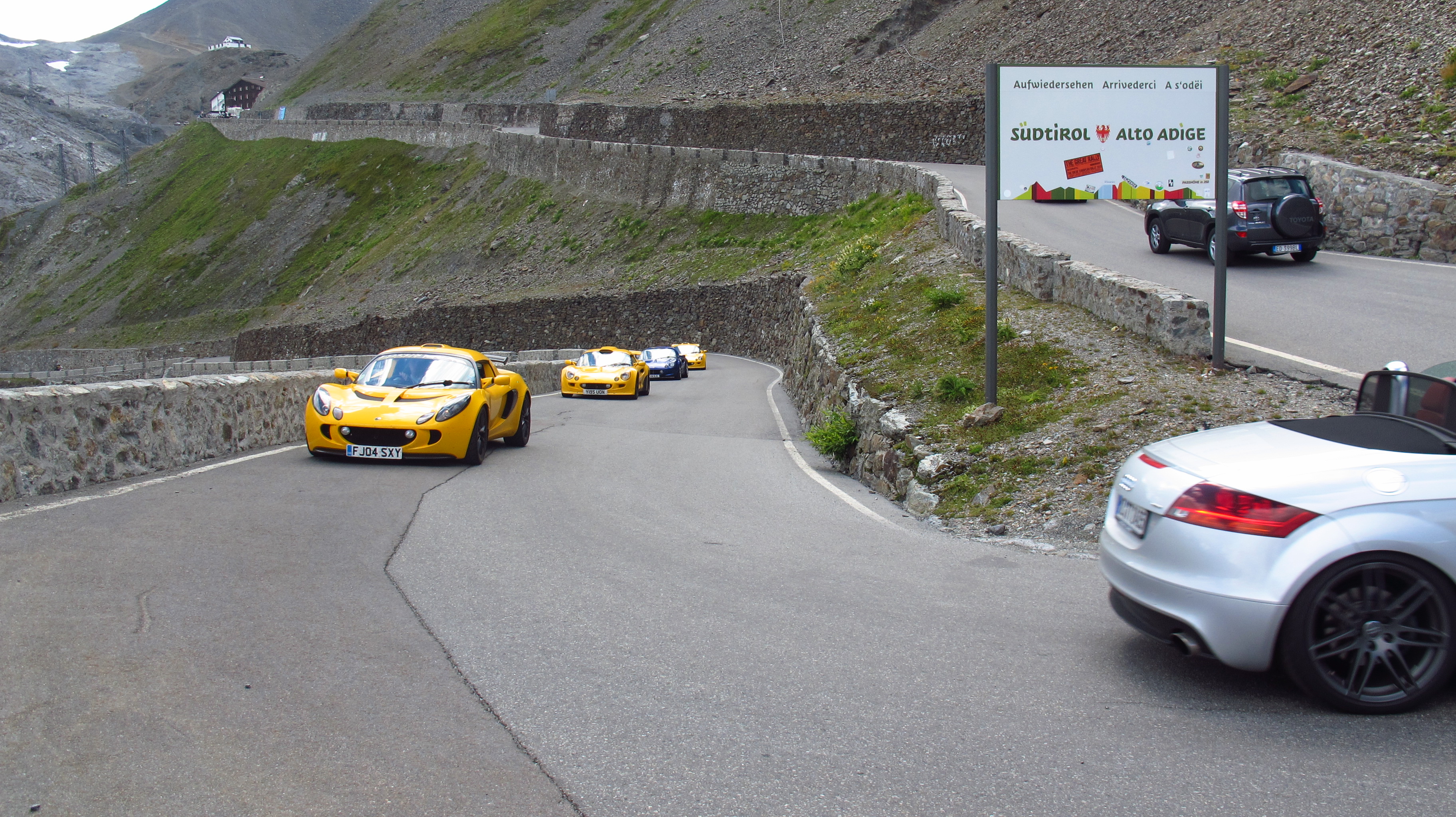 Nat did a beautiful co-piloting job, looking up the road as we approached each corner and letting me know if the way was clear for me to use all the available tarmac, and the odd slow car was quickly overtaken between hairpins. Oh, and talking about slow cars, I felt really, really sorry for a convoy of gorgeous Lotus Elises that spent the last part of the way up helplessly stuck behind a RAV4 driven at 10km/h by a family of tourists who looked absolutely terrified at the corners.