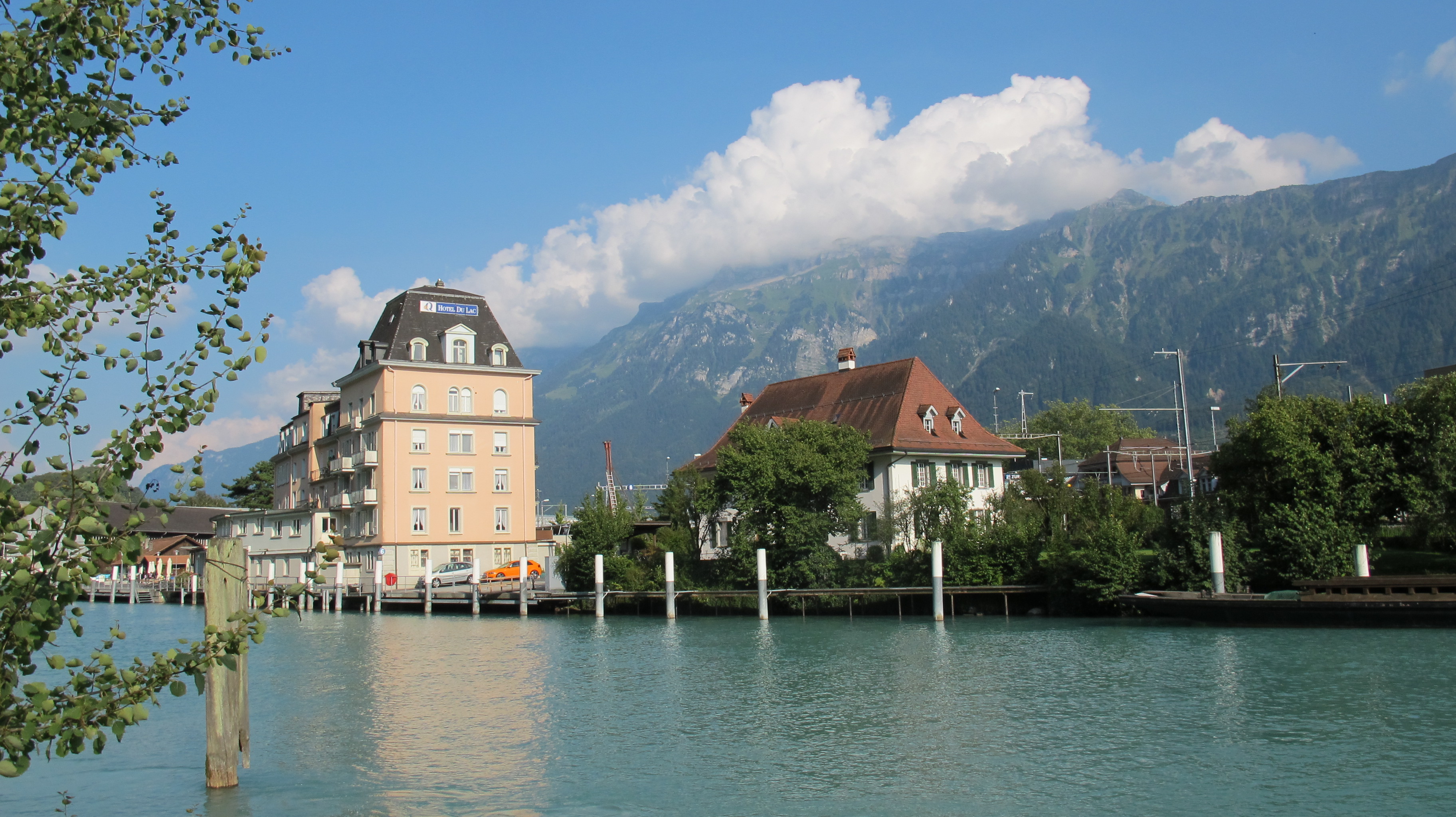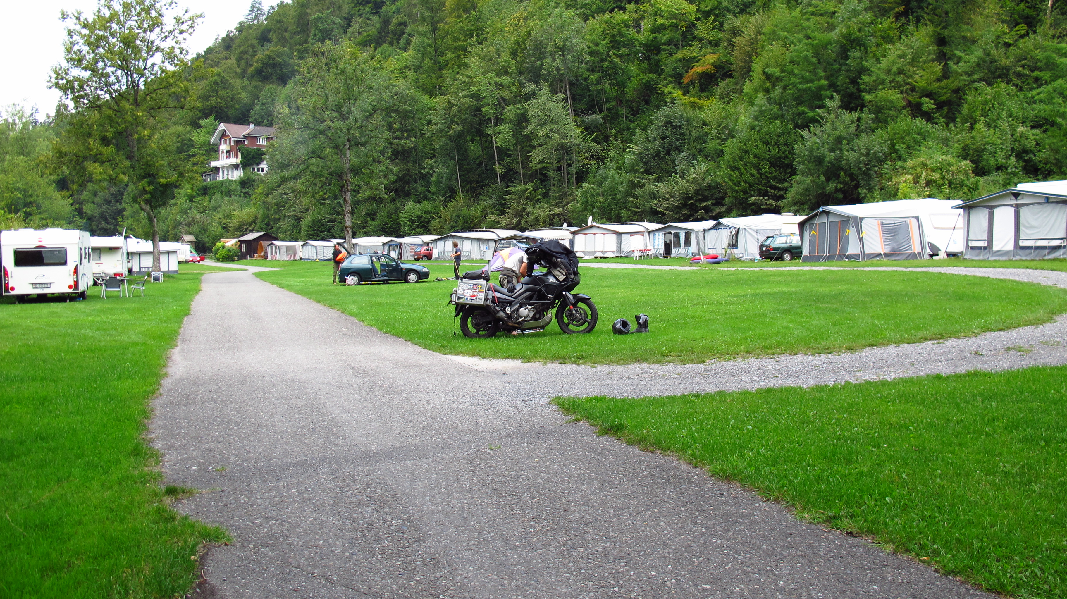 We stopped in a town called Innertkirchen to do some shopping for dinner and then rode the last few kilometres to Interlaken, where it did not take us long to find a great campsite right by the canal connecting both lakes, within walking distance from the city center.