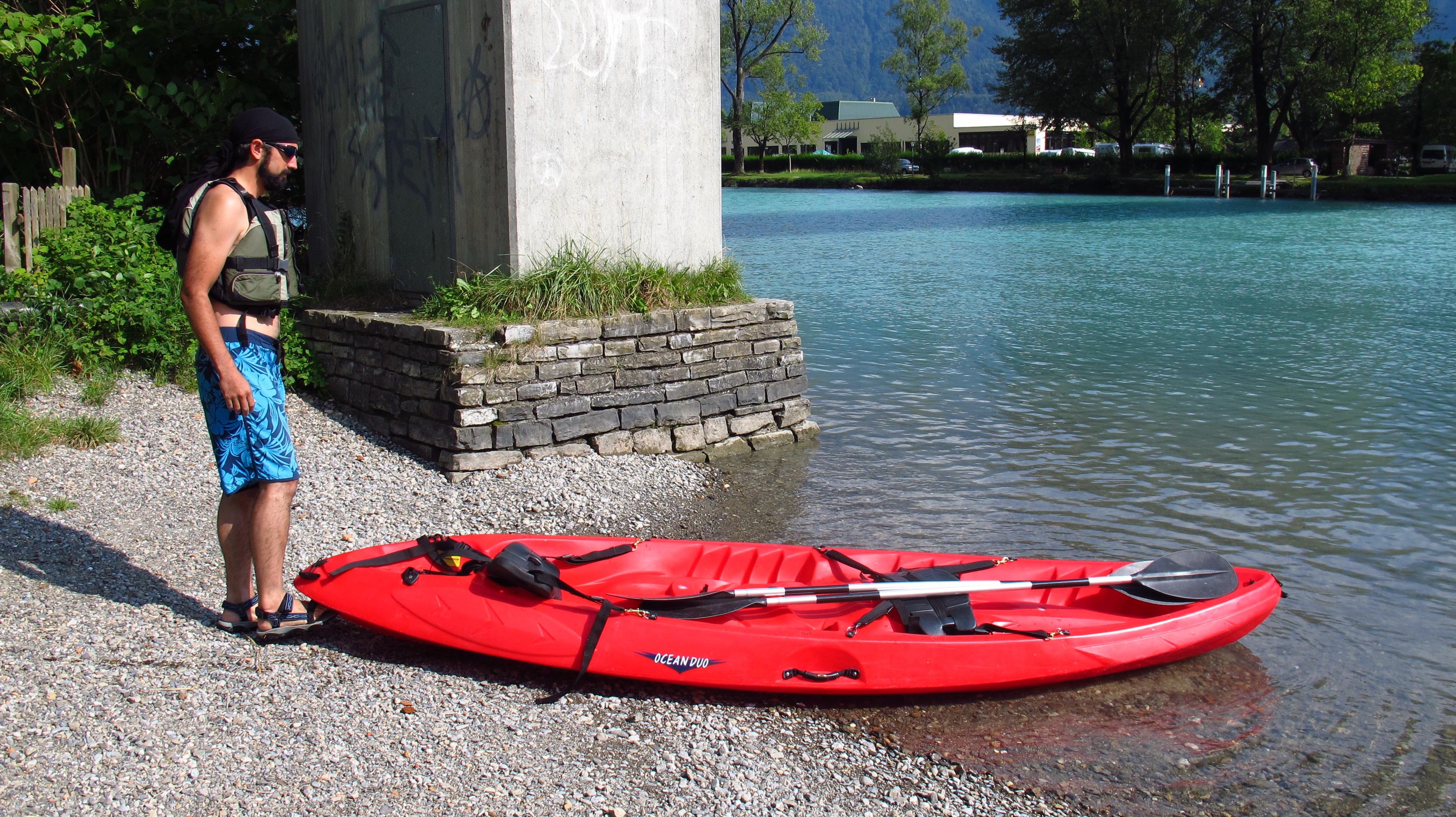 We took a few pictures before handing the kayak back and then went for a walk in Interlaken for the rest of the afternoon. In the center we saw a convoy of old Nissan Skylines that were taking part on a rally going from Kuwait to Morocco via Europe – it looked as if they were having great fun!